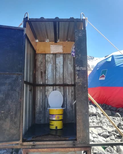 便座の下の缶に貯めておき、下の缶を定期的にヘリコプターが回収していっていました。