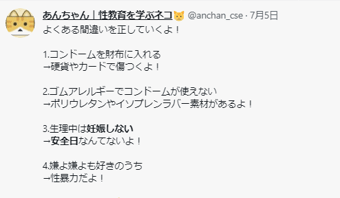 だいたい、「今日は妊娠しにくいから生でセックスできるよ」と言う感覚がおかしいのです。