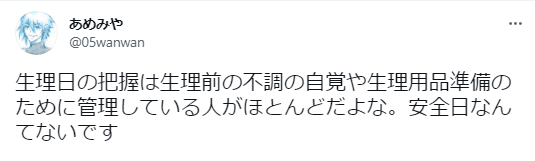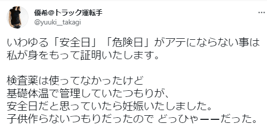 それ聞いてから、安全日なんて存在しないかも・・って思った。