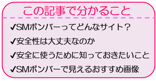 SMボンバーというサイトをご存知ですか?素人のSM動画像が見れてしまうSM好きには最高のサイトがSMボンバーです。今回は、そんなSMボンバーの安全性を解説しつつ、SMボンバーのようなプレイの仕方までを紹介していきます。SM好き必見の内容です!