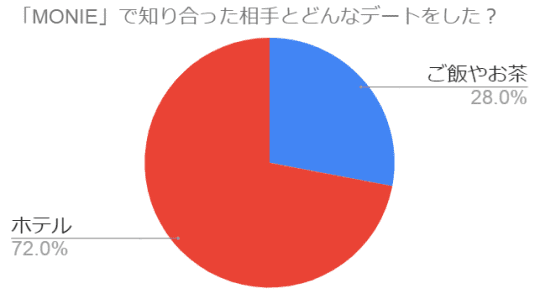 さらに、「MONIE」で知り合った相手とどんなデートをしたか、というアンケートの結果がこちら。