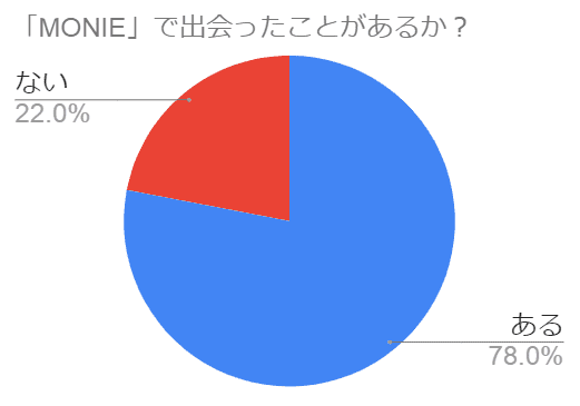 こちらの画像は、「MONIE」で出会ったことがあるか?という質問の結果をグラフに表したもの。