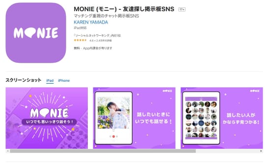 それは、Google PlayやApple Storeで入手可能な「MONIE(モニー)」というチャットアプリ。