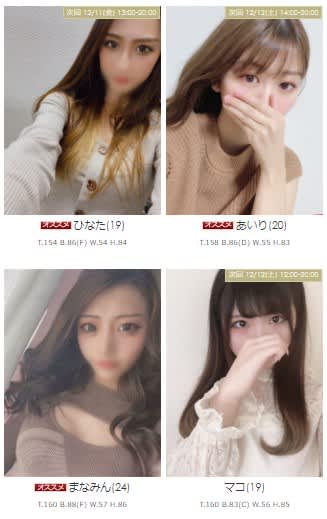 上品な女子大生系の女の子がズラリと並んでいます。性感エステって比較的ソフトなプレイ内容なので、ハイレベルな女の子が集まるんですよ。これもメリットのひとつですね。
