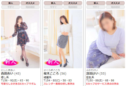 熟女のサービスの良さ、そしてルックスに満足しているという口コミが多いですね。