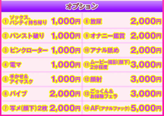 それに加え、変態心くすぐられるデリヘル並みの豊富なオプション!