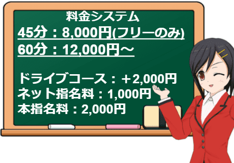 60分12,000円、指名料1,000円、他にホテル代が別途掛かっています。