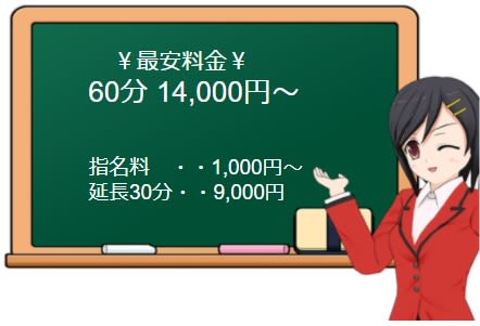 済まなそうにするスタッフ。せっかくですからFちゃんと遊びたいところ。僕はFちゃんを予約しました。60分コース14,000円、指名料1,000円です。