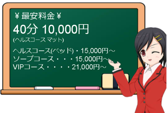 こちらのコースは一番安いヘルスコース(ベッド)の料金となっており、一般的なソープランドのサービスが受けれるソープコースですと40分15,000円~の利用となっています。