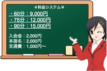 気になる料金システムですが、60分9,000円から、90分でも15,000円で遊べちゃいます。指名料は2,000円。初めての人は入会金が別途2,000円かかりますが、それでもリーズナブル!
