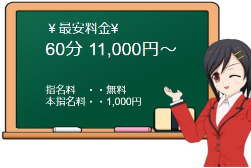 格安コースであれば60分11,000円~、お姉様コースであれば60分13,000円~、通常コースであれば14,000円~です。
