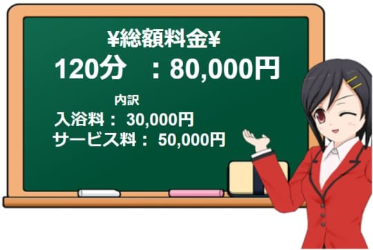 お店のホームページには入浴料のみしか掲載されていませんが、サービス料は50,000円となり、総額は80,000円となります。