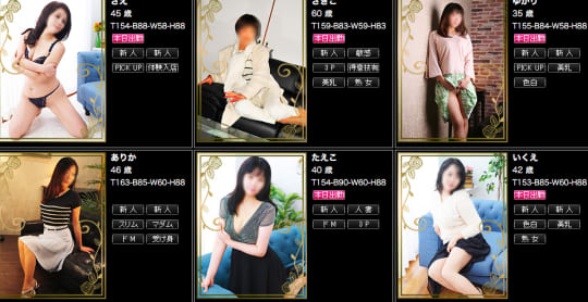 さすがに30代や40代の嬢を熟女と呼ぶにはまだ早いような気がしますが、一応熟女のようです。