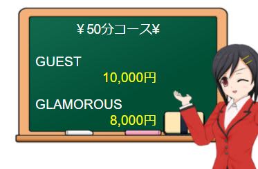 女の子には2種類ありまして、AV女優さんなどは【GUEST】クラス、一般女性は【GLAMOROUS】クラスに分かれています。最短が50分コースとなっています。