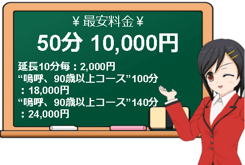 "嗚呼45歳以上山形店"の最安利用料金は50分10,000円となっており、熟女デリヘルとしては少し高めの料金設定だと思います。