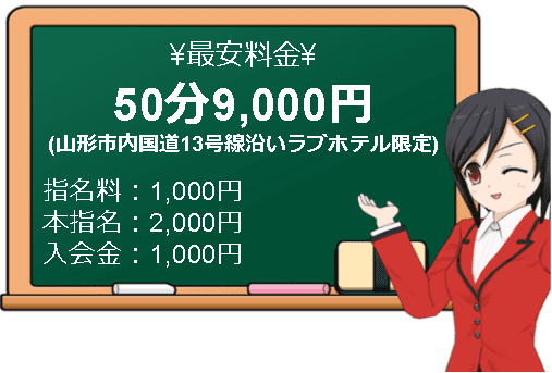 "愛されぽっちゃり俱楽部山形店"のは50分9,000円~利用出来るのですがこちらのコースは山形市内国道13号線沿いのラブホテル限定のコースとなっています。