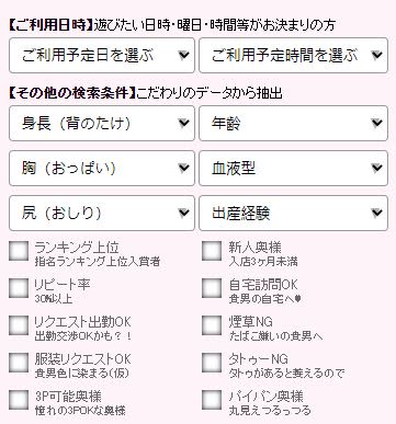 そして画像のように、ホームページではさまざまな条件設定で、タイプの奥さまを絞り込むことができるようになっています。