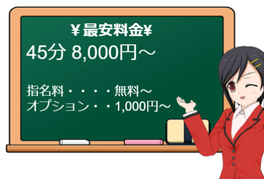 最安値は45分で8,000円に。ヘルスコースと見ると平均的と言えるでしょうか?