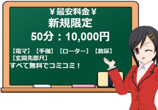 内訳:ご新規様限定特別コース 即即プレイ50分10,000円