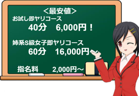 S級女子コースなら60分16,000円、M女子コースだと60分15,000円というほぼ相場程度の料金です。