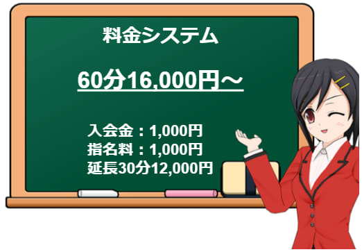60分16,000円に、入会金1,000円と指名料1,000円をプラス。