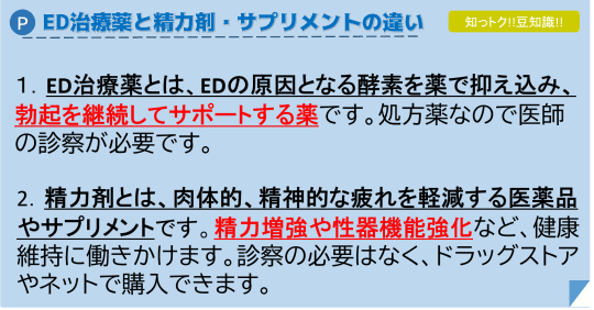 精力剤・サプリメントとED治療薬の違い