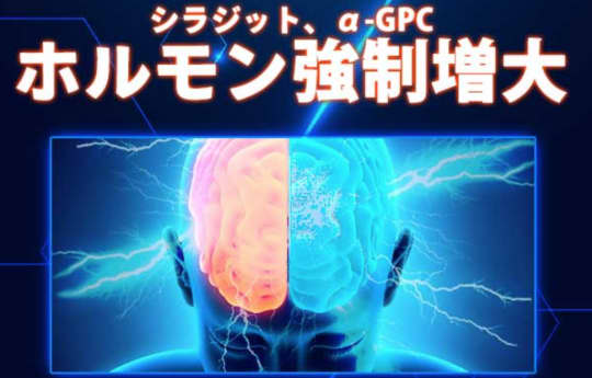 現代では、成長ホルモンの分泌を促すとされているこちらも今大注目の成分で、他の増大サプリにも用いられている"a-GPC"のホルモン増大作用とダブルパンチ!