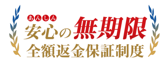 安心というより驚愕の全額返金保証制度が、なんと「無期限」でついています!