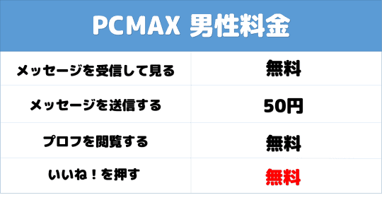 PCMAXの料金は上記の表の通りです!(1P=10円)