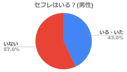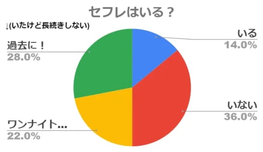 上記のグラフは『セフレがいる・いたか?』を男女別にアンケートを取った結果となります。