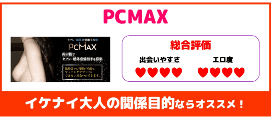 PCMAXは若い世代にも人気のアプリでパパ活目的な子もいますが、逆を言えばお金さえ払えば確実にセックスができるということ!即アポ・即エッチに関して優秀なのがPCMAXです。