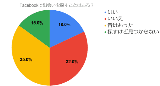 こちらは、僕が個人的にインターネットで男女200名程度に調査したアンケート結果をまとめたものなんですが、トータルとしては圧倒的にFacebookで出会いを探したことがある人が多いようですね!