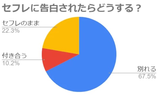 今回のアンケートでは、セフレに告白されたら別れると答えた男性が最も多いという結果になりました。やはりセフレはセフレとして捉えている人が多いようです。