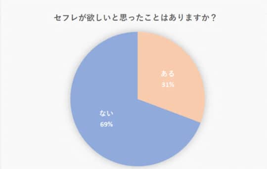 「セフレが欲しいと思ったことはありますか?」のアンケートで、あると答えた人は31%、ないと答えた人は69%でした。