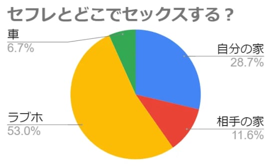 調査結果は、ラブホ派と家派のほぼ2択。ラブホにも家にもそれぞれのメリットがあるので、併用している人も多そうですね!