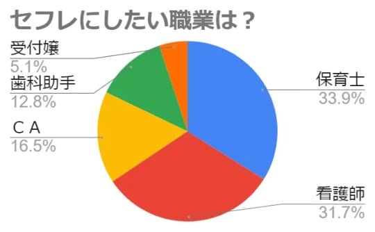 グラフを見ると、なんと不動の人気とも言える看護師を抜いて、保育士が一番人気という結果に!もちろん僕も保育士の女性が大好きです。