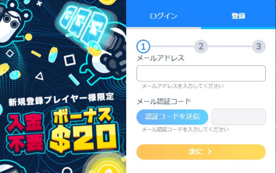口座登録や身分証などの不要!簡単に登録できて、20ドルボーナスが必ずもらえます。
