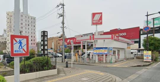 前方に見えるNIPPONレンタカーの手前の道に入って直進します。