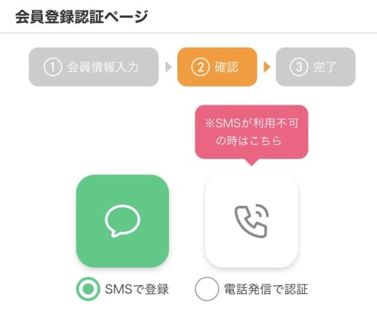 必要事項を入力した後は、登録時に電話番号の確認があるので「SNSでの登録or電話発信」で認証番号を確認していきます。