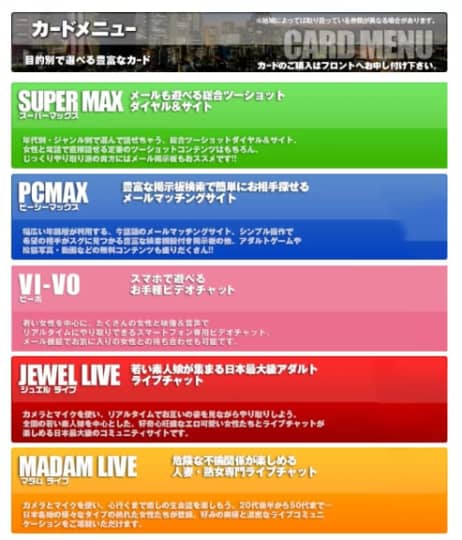出会い系サイトを経由して気になる相手を検索できるプランやビデオチャット・アダルトチャットを利用できるコースなども含まれています。