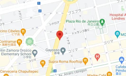 場所はメキシコシティ市内の中心地にあるので、先ず市内を走っている1番線バスへと乗車し、最寄バス停留所の「Metrobus Durango」下車をし、大通りに沿って北へと歩いて行くと、5分位で直ぐにQueen's Méxicoへと到着します。