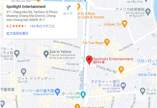 一応ネットで情報を探ってみると、Spotlightがチェンマイの中でも結構口コミが集まっていたゴーゴーバーだった為、向かってみることに。