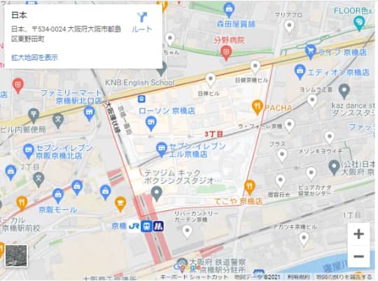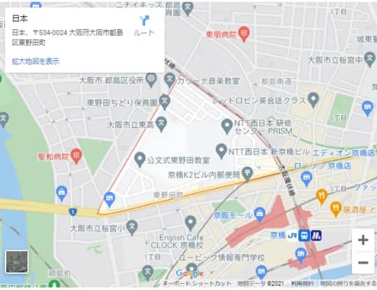 ピンサロとセクキャバは東野田町3丁目(上の地図)が密集地帯です。京阪本線の北側です。