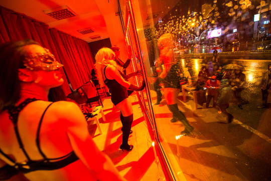今はヨーロッパの各地でチラホラと残ってはいますが、基本的にはどの国でも、道路に面したマンションの様な建物の中に、下着姿やランジェリー姿の売春婦が中からガラス越しから見える中の部屋でダンスをしており、道歩く男客に営業を掛けています。