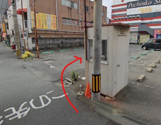 この先は行き止まりなので、ここを右に曲がり駐車場を突っ切ります。