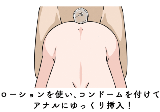 コンドームを装着して、コンドームとアナルにたっぷりローションを塗りましょう。