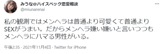 例えば Twitterで「メンヘラ」をキーワードに検索すると、驚くほど多彩なメンヘラちゃんがヒットしますが、この中にもいくつか罠が潜んでいます。