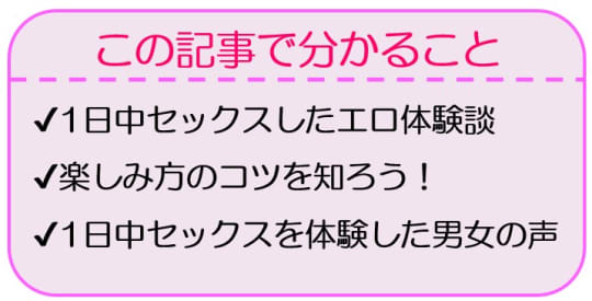体験談から、一日中セックスするにはどうしたら楽しめるかなども3選としてご紹介しているので、これからチャレンジしようと思っている方はぜひ参考にしてみて下さいね。