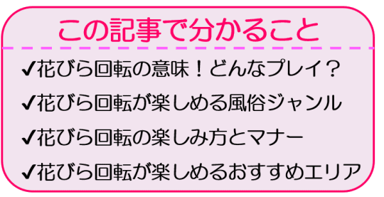 ピンサロや風俗でよく聞く単語花びら大回転。花びら大回転は通常のプレイよりもお得度、興奮度がギュッとつまった大サービスシステムです!今回はそんな花びら大回転のシステムや楽しみ方・楽しむことができるお店までを徹底紹介!筆者の経験からお店選びのコツまで教えます!