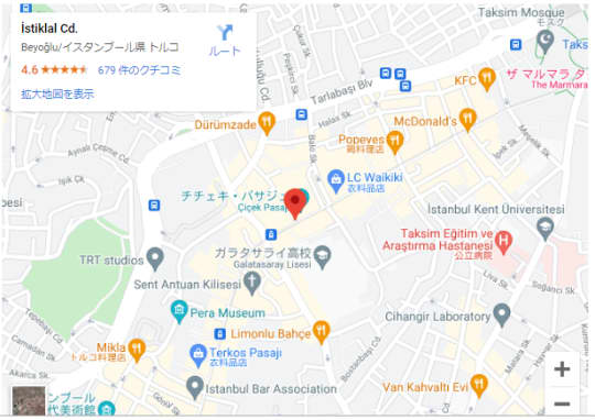 ただ、ちょっとだけ見てみたい!という興味が少しでもある方もいるかも知れませんので、一応軽く出しておくと「トラム12番線の停留所Galatasaray」で下車すると、徒歩です。